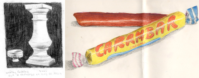 L’été 1990, je fais mon premier stage de dessin, je suis le plus jeune du stage, je suis très intimidé par les adultes et franchement mes antures mortes sont vraiment pas prometteuses !